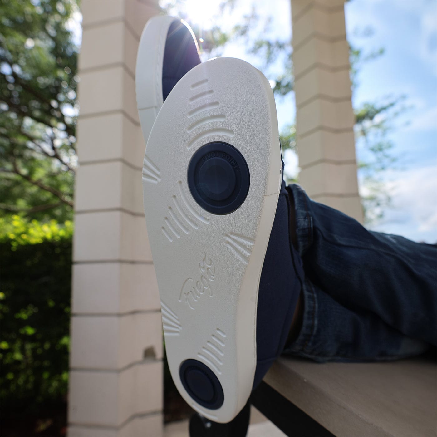 Puncte duble de pivot sub mingea piciorului și călcâi facilitează rotiri, pivote și învârtiri fără cusur.